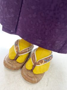 無地の着物は、ヒョウ柄🐆 帯は妖怪😈 ばけばけ! 草履は、クモの巣に🕷️コウモリ🦇