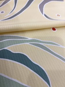 今日は、黄色のローケツ染め小紋に シャレ袋帯👘