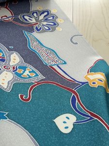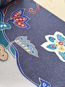 手描きバティック小紋に染め帯 秋色の小物を使い、柄に柄✨ 個性的な、コーディネートになりました👘