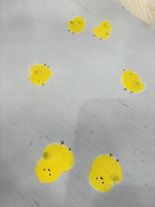 今日は、長井紬に型絵染九寸帯で コーディネートしました✨👘 温かみのある紬に 色々な表情の🐣ひよこが可愛い帯です💛